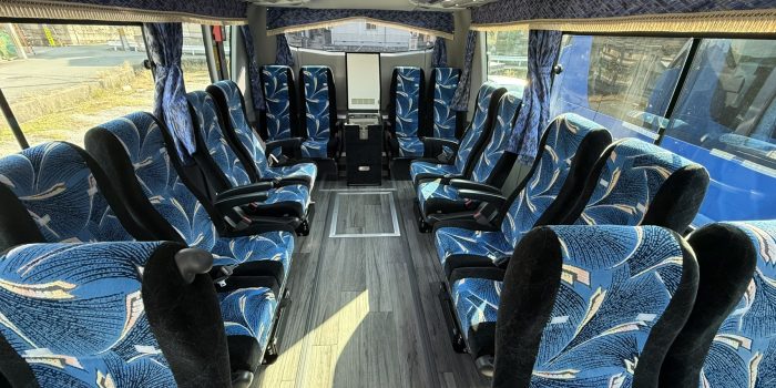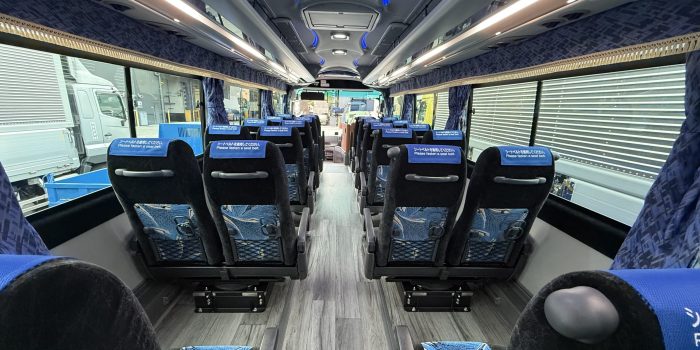 🚌11-11号車🚌 2025.12.04 湯沸かしポット(90℃まで加熱可能) 冷蔵庫(前) 正シートのみ・28名乗り 後部3列はサロンに変更できます。 冷蔵庫(後) 遮光カーテン・安眠カーテン(夜行運行時も眩しくない) 液晶モニター(前後2ヶ所) 安全装置(EDSS・ドライバー異常時対応システム) 安全装置(ドライバーモニターⅡ&車線逸脱警報) 7速AMT(ProShift7・機械式自動変速機) デジタルタコグラフ(DENSO製) トランクルーム(2スパン)